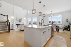 Family Home with WALKOUT BASEMENT BACKING ONTO LAKE walking distance to School! AMAZING LOCATION will reward you every day with modern living, GREAT VIEWS AND EASY ACCESS to all of Edmonton. DESIGNER TWO TONE KITCHEN with built in appliances, quarts tops plus a walkthrough pantry. Living room with a WALL OF WINDOWS, LINEAR FIREPLACE AND SOARING CEILINGS. Dinette has ROOM TO ENTERTAIN with a full width low maintenance deck. MAIN FLOOR OFFICE is a must. Upstairs to the PRIMARY SUITE FIT FOR A KING with an ENSUITE FOR A QUEEN. Bedrooms 2 and 3 are similar in size with a full bath, and laundry adjacent. BONUS ROOM IS THE PERFECT RETREAT for your favorite shows. Walkout basement is FILLED WITH NATURAL LIGHT and ready for future development. ULTRA EFFICIENT home has all of the upgrades to KEEP COSTS DOWN. Yard is landscaped READY FOR A SUMMER OF RELAXING. Double attached garage is insulated and drywalled. HOME IS METICULOUS and still feels like new.