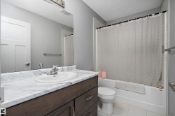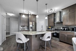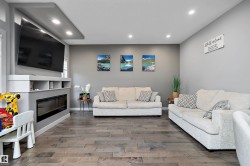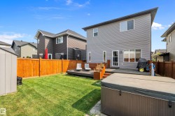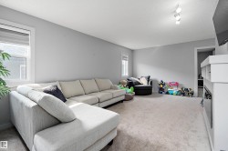 Welcome to this stunning family home in the highly desirable community of Secord! Featuring 5 bedrooms and 3.5 bathrooms, this property offers plenty of space for growing families. The main floor boasts 9-foot ceilings, hardwood and ceramic flooring, and a Chef’s Kitchen with stainless steel appliances (including a gas stove), granite countertops, large island with eating bar, and full-height cabinets with crown molding. The open living room with electric fireplace creates the perfect gathering space. Upstairs, enjoy a spacious bonus room with fireplace, a convenient laundry room, and a luxurious primary suite with 5-piece ensuite, dual vanities, soaker tub, and separate shower. The finished basement includes 2 more bedrooms and a full bathroom—ideal for family or guests. The beautifully landscaped backyard with multi-tiered deck and patio is perfect for summer BBQs and entertaining. Close to the Henday, schools, parks, and transit, this home combines comfort and convenience in a fantastic location.