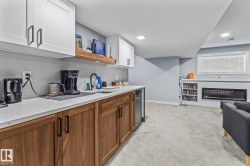 Step inside to an open-concept floor plan designed for comfortable living and entertaining. The bright living room welcomes you with plenty of natural light and a cozy electric fireplace. The space flows seamlessly into the kitchen, featuring an island with seating, a gas stove, and ample cabinetry for all your storage needs. The dining area completes the main level, highlighted by a large window overlooking the backyard. Main floor bar and coffee bar for entertaining! A convenient 2-piece bathroom finishes off this floor. Upstairs, you’ll find three bedrooms, including the spacious primary suite with its own ensuite, along with an additional 4-piece bathroom for family or guests. The fully finished basement adds even more living space, complete with a wet bar, an additional electric fireplace, a bedroom, and a 4-piece bathroom. Outside, enjoy the fully fenced backyard with a patio area and gas hookup for a BBQ. And yes central A/C. Close to many amenities including schools and shopping centers!