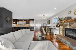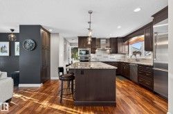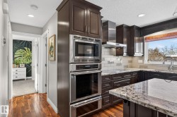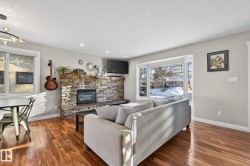 Fully upgraded bungalow tucked into a quiet cul-de-sac in a fantastic neighbourhood, close to schools and parks. The 1083sqft main floor offers 2 large bedrooms, with the original third bedroom thoughtfully converted into a spacious walk-in closet and private ensuite featuring heated floors. The custom kitchen is a standout with granite countertops, stainless wall ovens and a huge seated island. Warm living area highlighted by hardwood flooring and a gas fireplace. The fully finished basement adds incredible versatility with a bedroom, den, large laundry area and a generous recreation room complete with built-in cabinetry and an electric wall fireplace. All 3 bathrooms have been modernized, lighting updated and fixtures have been upgraded throughout the home. Additional features include air conditioning, central vacuum, irrigation in both front and back yards, solar panels, new electrical panel, oversized 26x24 heated garage, new doors, vinyl windows, soffits, facia and eavestroughs.