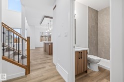 This beautiful two-storey home offers the perfect blend of modern design and everyday comfort. Featuring a double attached garage and a thoughtfully crafted layout, it welcomes you with a spacious foyer, front closet, and a practical mudroom with built-in storage. The main floor includes a versatile den and a full 3-piece bathroom, leading into an open-concept kitchen with a walk-in pantry, a bright dining area, and a cozy living room with an elegant electric fireplace. Upstairs, convenience meets style with upper-floor laundry, three generous bedrooms including a luxurious primary suite with a 5-piece ensuite and walk-in closet. You will also find an additional 4-piece bathroom, and a large bonus room perfect for family movie nights or entertaining guests!
