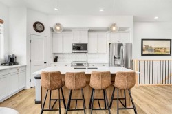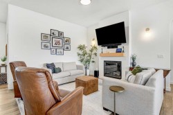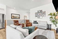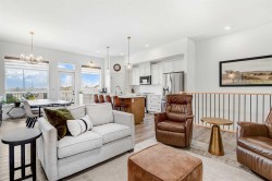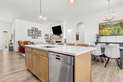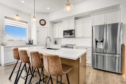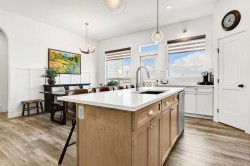 Welcome to this stunning 4 bed + den, 3 full bath bungalow nestled in the heart of the desirable Kensington Living community. Offering 1,382 sq ft of thoughtfully designed living space, this home is perfect for those seeking comfort, elegance, and a low-maintenance lifestyle.Step inside and be greeted by a perfect open-concept layout featuring top-tier stainless steel appliances, a reverse osmosis water system, and premium vinyl plank flooring that adds both durability and beauty. The designer lighting and elegant zebra blinds elevate every space, while central A/C ensures year-round comfort.On the main floor, you’ll find 2 spacious bedrooms, including the primary suite, along with the convenience of upstairs laundry. The fully developed basement features an additional 2 bedrooms, a versatile den, and a full bathroom—ideal for guests, home office, or extra family space.Enjoy entertaining in your private backyard with a BBQ gas line or take advantage of the impressive 3-car epoxy-coated garage floor complete with a garage heater—perfect for Alberta winters. Need more space? There’s even RV parking!This home offers luxury, practicality, and pride of ownership in every detail—just move in and enjoy.