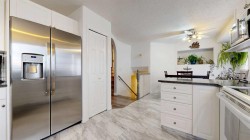 Welcome to this beautifully updated 4 level split in Crystal Heights, tucked away in a quiet cul-de-sac and surrounded by amenities everyone loves. Step inside to a bright main floor featuring updated flooring, a spacious living room, and an updated kitchen complete with modern cabinets and sleek quartz countertops. This layout offers room for the whole family with a large family room on the 4th level, perfect for movie nights or kids’ space, plus generously sized bedrooms throughout. The lower level also features in-floor heating for added comfort. Outside, enjoy a big backyard that is ideal for pets, kids, or summer gatherings. with the large pie-shaped lot and 2 level decking. For added convenience, your double attached garage has a radiant heater, and provides access to the third level entry and laundry room. You’re also walking distance to schools, parks, walking trails, and shopping, making this location hard to beat. A well-kept, move-in-ready home in one of Grande Prairie’s most family friendly neighbourhoods!