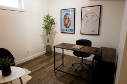 Lower Level Creative Workspace – Available for LeaseVersatile and thoughtfully designed, this 950 sq. ft. lower-level commercial workspace is ideal for entrepreneurs, small teams, or creative professionals seeking a functional yet inspiring environment. The space offers a flexible layout featuring two private offices, a soundproof recording booth, and an open-concept work area or boardroom, allowing for a variety of business uses.Additional features include a private washroom, wet bar with mini fridge, and access to a backyard garden, perfect for client meetings, team collaboration, or small events. Convenient alley parking adds to the practicality of this unique offering.A rare opportunity to lease a one-of-a-kind workspace that seamlessly blends productivity, comfort, and creativity.
