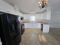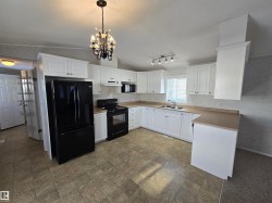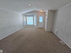 Tired of paying rent? IMMEDIATE possession available! This home just sparkles! Country style kitchen, spacious open dining area, large & open living room with vaulted ceilings, 3 bedrooms, including HUGE master that will fit all your King size furnishings & more, includes a large walk-in closet & 4pc ensuite! Two more very spacious & magnificent bedrooms, plus a 4pc main bathroom! This is an extremely clean home, no pets, & no smoking! Vaulted ceilings, bright with plenty of sunshine, and the best part...there is a HUGE deck to enjoy! This gorgeous home is truly an awesome floor plan & a must see! This lot include a large concrete pad & permitted to build a double garage! There have been many upgrades, including newer hot water tank, living room doors, extra insulation, includes rigid styrofoam to skirting and 100' of heat tape. Be sure to come view this gorgeous, extremely well cared for & affordable home! Matching storage shed is also included, plus all window coverings! Nothing left to do but move in!