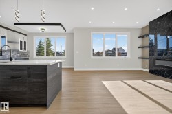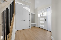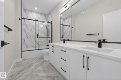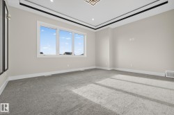 Welcome to luxury living in Edgewater Circle, Southfork Leduc! This brand-new 2,625 sq. ft. home with an oversized double attached garage is built to the highest standards and comes with new home warranty. The grand open-to-below foyer opens to an elegant main floor featuring a chef’s kitchen with built-in appliances, extended cabinets and counters into the dining area, and a modern tile fireplace in the living room. A main floor bedroom and full bathroom make this home ideal for multigenerational living. Upstairs offers an expansive family room and generous bedrooms. Added features include AC, side entrance for future basement development, deck, and landscaping allowance. Perfectly positioned backing Saito Park and green space, across from the lake and trails, and walking distance to the school—a perfect blend of elegance, comfort, and function. Available for immediate possession; don't miss out on this great home.