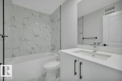 Modern, move-in ready 2-storey in the heart of Meadowview! This home features a bright, open-concept main floor with large windows, durable wide-plank vinyl flooring, and a sleek electric fireplace in the spacious living room. The contemporary kitchen shines with ceiling-height cabinetry, a centre island, dual-sink workstation, and stylish marble-inspired backsplash. You also have a main floor bedroom and full bathroom! Upstairs offers a spacious primary retreat with generous closet space, and a 5-piece ensuite with large soaker tub. 2 additional bedrooms, full bathroom, bonus room, and laundry complete this level. The exterior showcases modern siding with stone accents, an attached double garage, and a rear yard framed by a tall privacy fence. Located close to parks, schools, shopping, and with quick access to Hwy 2, Edmonton International Airport, and all major amenities. A perfect blend of style, comfort, and location—ideal for first-time buyers, families, and investors!