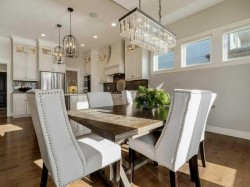 Former Signature Show Home in an amazing location. Fully developed, coffered ceiling in livingroom which features a stone fireplace, beautiful kitchen, Butlers Pantry off garage entry with laundry facilities. Dining area leads to deck with views that everyone will enjoy, part of the deck is covered with electric wind screens for added privacy and gas line for your BBQ. Double garage is heated with electric lift for storage shelf, plus water in garage. Primary suite on main floor with gorgeous ensuite bath, large walk-in closet with built ins. Other main floor bedroom has a murphy bed and was used as an office. Two generous size bedrooms upstairs as well as sitting area and built in desk at the top of the stairs. Basement has 9' ceilings and is an awesome entertaining space with walk out to patio, wet bar area, fireplace, plus a gym/dance studio with leather floor plus 2 more bedrooms. This home has so many upgrades and features, it would be an absolute pleasure to call Home.