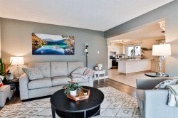 WEST SIDE CHARMER!! Excellent curb appeal, central west side location and numerous upgrades. Featuring 1140 sq.ft of sprawling space with 3 bedrooms, and 3 bathrooms. Check out this open floor plan, highlighting the massive kitchen with gleaming white cabinetry , and loads of counter space. Tons and tons of natural light shining through with all new windows!! Down the stairs is fully developed with a family room, den, bedroom, full bathroom , and a huge storage room. Dynamite package with off street parking and just in time air conditioning.