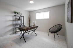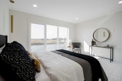 SHOW HOME FOR SALE! This award-winning show home in Southbrook, built by Stranville Living Master Builder, is finally ready to be sold and occupied by a lucky new homeowner. This Perth II model with walk-out basement has been recognized locally , provincially, and nationally for it's overall design, the executive kitchen, and the primary ensuite, making it one of the most popular builds every produced by Stranville Living. The pictures speak for themselves, but this home must be seen to be fully appreciated. The main floor is blessed with a gorgeous kitchen, accented by two-tone cabinetry, veined waterfall quartz island, and seamlessly integrated panel-ready appliances. Adjacent to the main kitchen is a private spice kitchen that includes a gas range and electric oven, hood fan, sink , and dishwasher. The striking main floor fireplace is a show-stopper that centers the family room and towers up the 18' ceilings in the open-to-below area with massive south-facing windows overlooking the pond at Discovery Park. Stairs with glass railing lead you to the upper level where you'll find the 170+ square foot primary bedroom that also enjoys views to the south. There are not many ensuite bathrooms that can rival this beauty, with features that include a custom shower with integrated tiled floor and walls, floating vanity in quarter-sawn oak with double sinks and floor lighting, deep soaker tub with floor-mounted fixtures, and a private water closet. Through the ensuite, you'll find the laundry room with a stacking washer/dryer set with sink and cabinet. Two more ample bedrooms, full bathroom, and generous media room wrap-up the upper level. The fully developed walkout basement adds two more bedrooms, full bathroom, and family room with a sliding patio door to the rear yard. If you're looking for 5-bedroom, fully developed, fully landscaped southside home with upgrades for days, you've come to the right house. There's nothing like NEW!