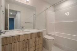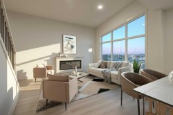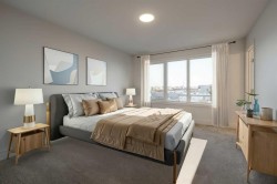 Welcome to the Juniper by Stranville Living Master Builder, a unique two-storey model located in the vibrant West Lethbridge community of Copperwood. IYKYK - this community has been the hub of the westside since 2006 and it's multiple parks, walking paths, and ponds provide the scenery and recreational opportunities not found in every neighborhood. Access to the Cavendish Farms Centre and the many restaurants and shopping is a quick trip across Whoop Up Drive, not to mention the Lethbridge LDS Temple, which is currently under construction in the same area. At just over 1,800 square feet of developed area, this 4-bedroom home is as versatile as it is beautiful, both inside and out. The main floor includes a beautifully appointed kitchen by Adora Cabinets, fully tiled backsplash, and quartz countertops for both the base cabinets and island with extended bar. Stranville Living's top tier appliance package includes a seamlessly integrated paneled Fisher & Paykel fridge, paneled dishwasher, induction cooktop, built-in hood fan, and a stainless steel wall oven and microwave combo unit. A sleek electric fireplace accents the main floor living room with a wall mounted mantle that is crisp and clean. A large sliding glass door exits onto the future deck and sits adjacent to a massive rear rake style window with park views for days. The unique element of this main floor is a flex room that can be either an office for those needing to work at home or an auxiliary bedroom with direct access to a full 4-piece bathroom, which sets up perfectly for someone with mobility issues, like an aging close relative. Upstairs, you'll find the large primary bedroom and ensuite with double vanity sinks and a lovely tiled shower. Two more bedrooms, another 4-piece bathroom, a bonus room, and laundry room complete this upper level. The oversized garage is 25' wide, sitting on a lot that is 42' wide, making this one of the largest parcels on the block. Don't forget about the high efficient mechanical equipment, Low E windows, and spray foam in the rim joists that help keep your heating and cooling costs in check. Photos may contain virtual staging.