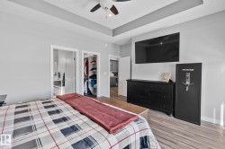 Welcome to this exceptional walkout bungalow backing onto a tranquil pond. It features a heated oversized triple-car garage and an open-concept main living area that flows seamlessly onto a large deck with peaceful water views, plus a charming front patio to enjoy your morning coffee. The main floor offers two bedrooms and two full bathrooms, while the lower level boasts a stunning in-law suite with 9-foot ceilings, two spacious bedrooms, its own private laundry, in-floor heating, a full kitchen with island, a cozy fireplace, and a bright living area that opens directly onto a large covered deck. The primary bedroom in the suite features a luxurious ensuite with a separate bathtub and shower, and there is an abundance of additional storage in both the garage and the outside storage shed. Added comforts include air conditioning throughout, a security system, and a thoughtful design that blends comfort, flexibility, and elegant indoor-outdoor living in a serene pond-side setting.