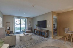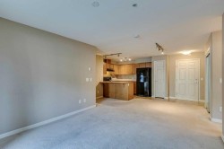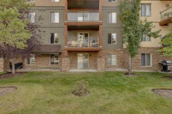 This well-kept main floor condo offers practical living with 2 bedrooms, 2 full bathrooms, and a den. Ok, you got me, it’s a tiny nook that is barely big enough for a desk, but the developer called it a den, so I am too. The open layout has a bright living and dining area that connects to an efficient kitchen with lots of counter space, a pantry, and room for a few stools at the peninsula. The primary bedroom is big enough for a king bed, has a large walk-through closet, and a full 4pc ensuite. The spare bathroom features a walk-in shower. The unit includes heated underground parking with a storage cage in front, and the parkade also has a car wash bay, making winter living easier. The building is well managed with amenities that include a fitness center, sauna, steam room, hot tub, and a recreation room with a kitchen and pool table. Outside, there is a shared BBQ and picnic space, and Crystal Ridge Golf Course is only minutes away. You’ll also be able to enjoy lake access, with year-round activities like fishing and skating this winter, or swimming and paddling next summer. Note: some images have been virtually staged.