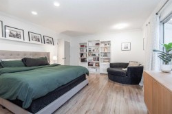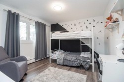 Welcome to the home you've been waiting for! This spacious 2366 sqft 5 bedroom 4 bath gem is conveniently located just a short walk from, parks, elementary and middle schools, and a short drive to all essential amenities. Nestled among mature trees on a quiet close, this property is hard to beat. As you step inside, you’ll immediately appreciate the laminate flooring that flows through the living room, featuring a cozy wood-burning fireplace, the dining area, and a versatile space that serves as an additional sitting area or breakfast nook etc. The kitchen boasts gas stove, elegant quartz countertops, a stylish backsplash, and tile flooring. The main-floor primary bedroom is very spacious with a walk-in closet, a vanity with ample storage, and a luxurious ensuite complete with an oversized double shower. Just off the master, you'll find a private covered patio that leads to the separate study/home office. Upstairs, three generously sized bedrooms await, along with a craft/playroom and a well-appointed 4-piece bathroom The lower level includes a welcoming family room, an additional bedroom, a flex room, a 4-piece bathroom, two playhouses, and two egress windows that fill the space with natural light. The laundry room has a utility sink and an abundance of space for drying racks, storage, and extra appliances. The back yard is fully fenced and has a massive deck that spans the entire back of the house! This property has lots of room for your family to grow!!