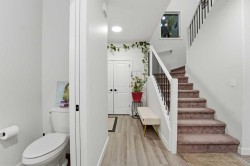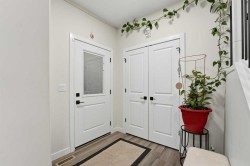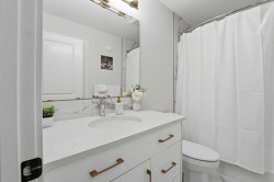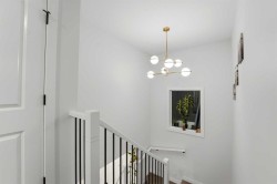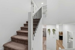 Tucked away on a quiet cul-de-sac, this beautiful two-story home built in 2022, exudes MODERN CHARM and thoughtful design at every turn. Boasting over 2100 sq.ft. on the upper two floors, it offers plenty of space for comfortable living and effortless entertaining. You'll love the 3 spacious bedrooms, and 2 1/2 stylish bathrooms each finished with elegant contemporary touches that make the home feel fresh and upscale. The OPEN CONCEPT main level fills with NATURAL LIGHT and seamlessly connects living, dining and kitchen areas-perfect for family gatherings or quiet evenings at home. A beautiful WHITE kitchen boasts full tiled backsplash, large eat up ISLAND, gas stove, and stainless appliances. The walkout basement opens to bright natural light with WEST EXPOSURE and a covered stone patio, and features roughed in for a future bathroom, giving you endless possibilities to CUSTOMIZE and expand your living space. You will also APPRECIATE the 23x24 HEATED ATTACHED GARAGE, complete with EPOXY FLOORS, built in shelving, a floor drain and even a man door. Upstairs this stunning home truly shines! Boasting a luxurious master bedroom, a perfect retreat after a long day, offering space to easily fit king size furniture, a beautifully appointed four-piece ensuite. Two additional bedrooms share a well designed four-piece bathroom, making morning routines a breeze for family and guests. The bonus room provides endless versatility- perfect as a playroom, media room, home office, or gym. A spacious UPPER FLOOR LAUNDRY for added convenience, making every inch of this upper floor convenient, comfortable and modern living! Air conditioning for summer comfort, central vacuum, EXTENDED driveway for additional parking and guests, EPOXY garage floors, & remainder of a 10 year home warranty provides peace of mind. Located conveniently to PAVED TRAILS, PARKS, SCHOOLS, and all major shopping amenities.