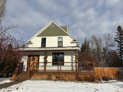 Looking for the perfect Christmas Gift? This beautiful Heritage home should be on everyone's Christmas List! So many updates throughout this incredible home which is located on a gorgeous street with Coronation Park on its doorstep! Plenty of charm as you walk up to the new south facing front covered porch with composite boards that wraps all the way around to the east of the house. The perfect place to sit with a glass of lemonade and look out towards the beautiful park. Walking into the large, amazing foyer with shiplap walls and high ceilings, you will find lots of room for cabinets and benches. The living room with feature walls and electric fireplace has south and east facing windows making it light and bright. Wide plank hardwood floors throughout the main floor! The living room flows into the large dining room with patio door to the east side deck, lovely to catch the morning sun with your first cup of coffee as you overlook the private yard with lilac, plum and apple trees! Off the dining is a gorgeous kitchen with custom kitchen cabinets, with newer appliances (2019), granite counter tops, pull outs in pantry, lots of decorative tile, plus cookbook niche. So lovely! Also on main floor is laundry room and a pretty little half bath., Plus the awesome addition which is a great flex space that can be used as a family room, or large sunny porch to sit and enjoy the sun with new glass door and windows and laminate flooring! Upstairs you will find three spacious bedrooms including the lovely primary bedroom. The family bathroom has a soaker tub and separate shower! Plus the bonus 3rd level loft can be used as an office area or 4th bedroom and has rough in for a bathroom. The basement has a rec area and potential bedroom space and plenty of storage space plus a bathroom with shower. So much on offer here including a double detached garage with gas line for roughed in heat and new door. Some of the many updates are newer roof, new porch, windows in 2019, new insulation in walls with vapour barrier to keep home cool in the summer and warm in the winter! New electrical panel and electrical wiring and plumbing. Added rebar to deck with composite boards. The list goes on . . .this incredible 1908 character home has so much charm plus all the convenience of a new home!