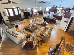 110 acres of tranquility with private lake frontage. Enjoy a 4,300 sq.ft. open-concept home (built 2007) featuring cappuccino maple cabinetry, island with wine rack, gas range, and double wall oven. Primary suite offers a 4-piece spa ensuite with jet tub, body-jet shower, and walk-in closet. Property includes a massive Quonset, large gazebo with fully equipped summer kitchen, and endless trails for quads, horses, snowmobiles, and side-by-sides. Attached shop currently used as living space. This is the ultimate recreational package! Close to the Athabasca River, Jackfish Lake and crown land. Water lines and electrical hookups for campers. Laundry and shower in washhouse.
