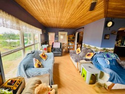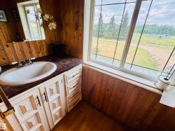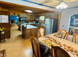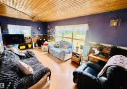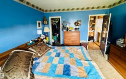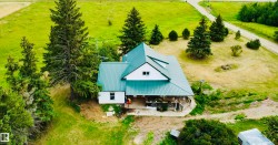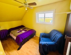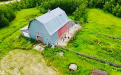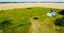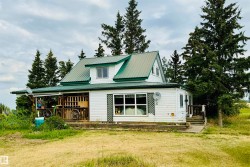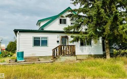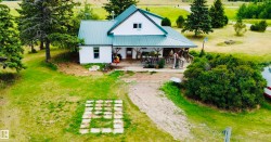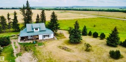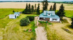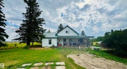 Charming farmhouse on 9.72 acres just minutes from St. Paul! The heart of the home is the spacious country kitchen, featuring wood cabinetry, island adding ample counter space, and room for a large dining table - perfect for family gatherings. A bright sunroom offers a cozy spot to relax year-round, while the covered front porch is ideal for enjoying peaceful prairie views. Inside you'll find 4 bedrooms (3 upstairs & 1 on the main floor), a 4 piece bathroom and laundry conveniently located on the main level, and a 2 piece bath upstairs for added comfort. Outside, the classic barn offers space for animals, storage, or hobby farming, and the open land is perfect for gardening, building your dream shop, or outdoor recreational fun. A charming blend of vintage character and practical country living!