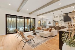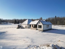 EXCEPTIONAL QUALITY, DESIGN AND LOCATION! This 2022 CUSTOM BUNGALOW is built on 3.82 private acres just 5 minutes West of Drayton Valley, AB, on a quiet dead-end road! A gated driveway leads to beautifully landscaped grounds with rock beds and stamped concrete on both front and rear covered decks. The 30x34 oversized triple garage features 13ft ceilings, 10ft doors, and epoxy floors. Inside this beautiful home you will notice 10ft ceilings, 8ft doors, fir beams, and Apex black vinyl windows that create a refined, light filled interior with an elevated sense of space and sophistication. The elegant and modern kitchen offers quartz countertops, a waterfall island, and KitchenAid appliances including a 36-inch gas range with pot filler. The primary suite features a fireplace, spa-inspired 5-piece ensuite, walkthrough closet with vanity. This may be what you have been waiting for! *Drone outlines are approximate.