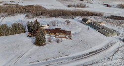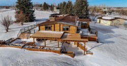 Breathtaking panoramic views of rolling countryside, sunrises, sunsets, the Rockies, and Calgary’s skyline define this exceptional gated & fenced almost 40 acre property just 5 mins to Calgary city limits south. Original family owned and built, 1st time ever listed. Formerly a licensed commercial greenhouse operation, the beautifully landscaped property features mature trees, concrete walkways, and endless potential. The large cedar log bungalow offers warmth and character with 2 wood burning fireplaces, expansive living spaces, flexible bedrooms/offices, developed basement areas, and seamless indoor-outdoor living with decks, pergolas, and patios. Equipped with hydronic and forced-air heating, A/C, Vacu-Flo, security system, radon mitigation, dual wells, softened and distilled water, and a meticulously maintained septic system. Extensive infrastructure includes a triple garage, heated workshop, barn with loft, and three fully serviced greenhouses, with parking. Easy highway access to Calgary and Okotoks, school bus route, agricultural income potential, and future subdivision or home-based business opportunities (with county approval). A rare, versatile acreage so close to Calgary offering lifestyle, income, and long-term value.