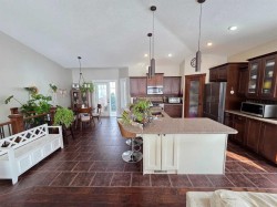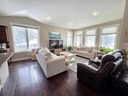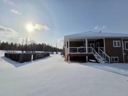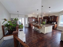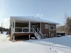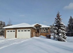 Located just minutes from the beautiful Wapiti Nordic Ski Trails, and conveniently located just before the turnoff to The Ranch subdivision, this stunning 1,600 sq. ft. fully developed raised bungalow offers the perfect blend of luxury and peaceful acreage living.Situated on 3.04 acres of sandy, pine-covered terrain, this exceptional property features a thoughtfully designed floor plan that embraces its natural surroundings. The home welcomes you with hand-scraped hardwood flooring, elegant iron spindles, and an open-concept main living area filled with natural light.The kitchen is a true showpiece, complete with quartz countertops, dark cabinetry, and a massive island—perfect for entertaining or family gatherings. The dining and living areas flow seamlessly, creating a warm and inviting space to call home.The impressive primary suite overlooks the serene, treed backyard and includes a spacious walk-in closet and a spa-inspired ensuite , dual sinks, a separate shower, and a relaxing jet tub. Two additional bedrooms, a full bathroom, and convenient main floor laundry complete the upper level.Downstairs, the fully developed basement offers an expansive family room with a cozy gas fireplace and wet bar, two oversized bedrooms, and another full bathroom with in-floor heat—ideal for guests or a growing family.Car enthusiasts and hobbyists will love the huge finished and heated triple garage, providing ample room for vehicles, toys, and storage.If you’ve been dreaming of acreage living with modern finishes and city convenience just minutes away, this is your opportunity. Take the short, scenic drive and experience this incredible property for yourself!