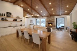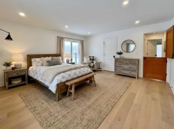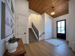 Set on 4.27 fully fenced acres just seconds outside city limits, this property pairs rare proximity with true luxury acreage living.The home underwent a full transformation in 2023 in partnership with luxury builder HomeEdge. Today, this completely rebuilt 4,000+ sq ft residence blends warmth, refinement, and exceptional craftsmanship, rarely found in a mature acreage subdivision.A private driveway leads to the attached garage, framed by striking black triple-pane windows with a lifetime warranty. Clean architectural lines and a thoughtfully contrasted palette feel modern yet grounded in the surrounding landscape.Inside, soaring ceilings with exposed beams stretch above warm hardwood floors. Ten-foot solid-core doors and custom built-ins elevate the main area, with a stone wood-burning fireplace with gas starter. The kitchen is nothing short of remarkable. A 14-foot custom island with integrated butcher block and secondary sink. High-end Wolf appliances, including a gas range with double ovens, pair with a fully integrated Sub-Zero refrigerator concealed within custom cabinetry. Three dishwashers, two cleverly hidden, ensure effortless hosting. Dovetail joinery, pull-out shelving, hidden spice racks, appliance garages, and custom organizers - intention in every detail. A curated bar area extends the entertaining experience, complete with a built-in ice maker, drawer refrigerator, and sink, thoughtfully positioned without disrupting the kitchen’s flow.The enclosed three-season room adds versatile living space with dual gas heaters, a built-in BBQ with exhaust, and a powered screen system. Nearby, a private office offers quiet productivity with direct outdoor access.The primary retreat feels both expansive and intimate, with patio doors and powered blinds opening to the backyard deck, already wired for a future hot tub. The spa ensuite features a steam shower with seating and dual heads, heated floors, automatic blinds, a private water closet, and a freestanding tub positioned for prairie sunset views. The custom walk-in closet includes built-ins throughout and a chute to the laundry.Upstairs, one bedroom functions as a private suite with its own Juliette balcony, ensuite, and laundry hookups. Two additional bedrooms share a beautifully finished bathroom with double sinks and tiled soaker tub. Heated floors extend through every bathroom and into the laundry room.The bright walkout lower level offers a separate gathering space with patio doors to the yard, a striking wet bar with ceiling-height tile, built-in ice maker, and bar fridge space. With a gas fireplace, additional bedroom, and tiled 3-piece bath. Soak in the luxury with; an RO system, softener, hot water on demand, air conditioning, and a finished storage room.Beyond the home, a 36’ x 48’ heated shop (2018) features radiant heat, 8’ and 14’ overhead doors, drain and a mezzanine. A 25’ x 43’ fully serviced barn offers five stalls and a tack area, with power and heat.
