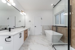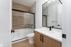 Experience upscale living in this brand new two storey home in Nisku offering 2,600 sq. ft. of luxurious, well designed living space. The main floor features 9 ft ceilings, an open to below layout, and oversized windows that fill the home with natural light. The white kitchen impresses with marble countertops, a large island, and a walk through spice kitchen and pantry, opening to a bright dining area and cozy living room with a marble surrounded fireplace. A main floor bedroom and full bath add flexibility. Upstairs offers four spacious bedrooms, including a primary suite with a walk in closet and spa inspired 5 piece ensuite, plus an additional ensuite bedroom, two more full bathrooms, and convenient upstairs laundry. The unfinished basement with side entrance provides future potential, while the covered deck is perfect for relaxing. Located minutes from the airport and nearby playgrounds, this brand new home is ideal for families looking to create lasting memories.