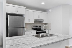 Nestled in the heart of Liberty Landing, this contemporary townhouse presents a splendid opportunity for first time home buyers and investors alike. This newly built home offers the perfect blend of modern design and convenience, situated in a vibrant area brimming with restaurants and various amenities. Step inside and be greeted by an open design main floor that seamlessly combines living, dining and cooking spaces. The kitchen is equipped with a separate island. The large dining area is perfect for family gatherings with access to a delightful deck for summer bbq’s. Comfort and convenience are paramount with a handy 2 piece bathroom completing this level. As you ascend to the upper level, this townhouse continues to impress with two well-proportioned bedrooms. The master bedroom boasts a walk in closet, ensuring ample storage. A 4 piece bathroom compliments the upper floor, along with a separate laundry room. The basement, currently undeveloped holds a world of potential. The builder offers an option to finish this space at an additional cost. Outdoor features low maintenance front yard adorned with decorative rock, while the partially fenced backyard serves as a blank canvas for your landscaping aspiration. Photos are representative.