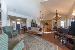 Custom-Built Executive Bungalow on 9.4 Acres of Scenic Beauty in Lloyd School Division. Nestled on 9.4 acres of picturesque land, this custom-built executive bungalow offers unparalleled luxury and serenity with a walkout basement. Enjoy the best of both worlds with breathtaking south and west sun exposure, perfect for capturing stunning sunset views every evening. Step inside to discover vaulted ceilings that create an airy and expansive feel. The open-concept living area is perfect for entertaining, with beautiful hardwood flooring adding a touch of elegance throughout the home. The kitchen is a chef’s delight, featuring sleek quartz countertops and modern appliances. Prepare meals with ease and enjoy the seamless flow into the dining and living areas. This home boasts four generously sized bedrooms, providing ample space for family and guests. The fully finished walkout basement offers 9 ft ceilings , additional living space, perfect for a family room, home gym, or entertainment area. The possibilities are endless! A second kitchen in the basement is ideal for summer gatherings or catering to guests, canning or making wine! There is a moveable island for added convenience. Embrace outdoor living with the waterfall and a charming gazebo and a fire pit area, perfect for cozy evenings under the stars. There's also a designated spot for a hot tub, allowing you to relax and unwind in style. Enjoy year-round comfort in the sunroom/ dining area which could be converted to another bedroom, a perfect spot for morning coffee or an afternoon retreat. This executive bungalow is a rare find, offering luxurious living in a serene, natural setting. Don’t miss the opportunity to make this stunning property your forever home. Elevate your lifestyle with this custom-built executive bungalow – a perfect blend of luxury, comfort, and natural beauty.