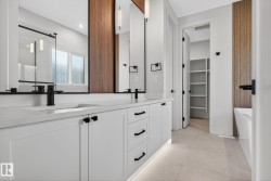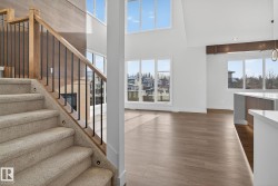 Stunning home by Blue Arc Homes in the highly desirable neighbourhood of Fenwyck in Spruce Grove Perfect location for work life balance and advantages of having all the amenities of big city with a small town feel. This beautiful custom built home with front attached garage has 3 bedroom on the second floor with den/bedroom on main floor, side entrance to basement, kitchen cabinets height to ceiling, Bonus room on second floor, 9 feet ceiling on main floor, Open to above ceiling in living room, Electric fire place in family room, Quartz countertops in kitchen & bathrooms. This house checks all the boxes on your checklist.