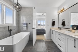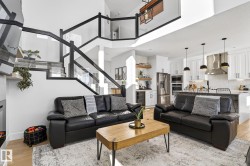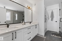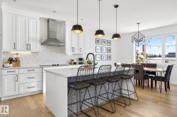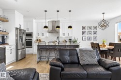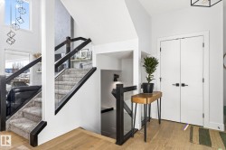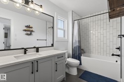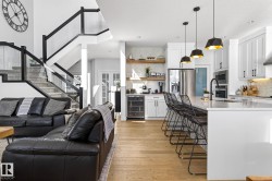 Situated in the established, family-friendly community of Harvest Ridge in Spruce Grove, this beautifully appointed two-storey offers 5 bedrooms, 3.5 bathrooms, and 2,312 sq ft of thoughtfully designed living space where comfort meets elevated everyday living. Soaring ceilings and an open-to-below design flood the home with natural light, creating an airy feel while maintaining warm, connected spaces for entertaining and family life. Rich hardwood flooring spans the main and upper levels, adding timeless character throughout.The main floor features a dedicated den ideal for a home office, while upstairs offers a spacious bonus room perfect for movie nights or a kids’ retreat. Enjoy seamless indoor-outdoor living with a composite deck and paved patio backing green space. The primary suite boasts a spa-inspired ensuite with heated floors, and the fully finished basement provides flexible space for recreation or guests. Double attached garage, close to parks, trails & shopping.