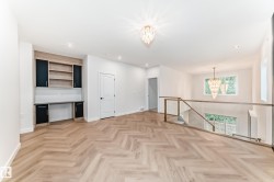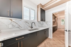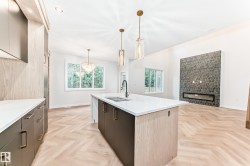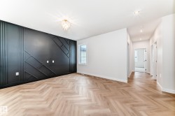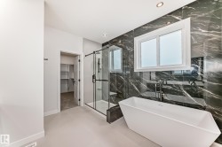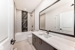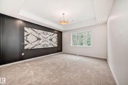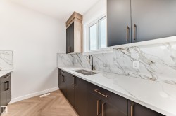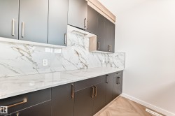 UPGRADED HOME BACKING GREENSPACE IN THE COMMUNITY OF MCLAUGHLIN! This home boasts 2557 sq/ft with 4 bedrooms, 3 full baths, bonus room & 9ft ceilings on all three levels. Main floor offers vinyl plank flooring, bedroom/den, family room with 18ft ceiling, fireplace. Kitchen, with modern high cabinetry, quartz countertops, island, & BUTLERS PANTRY/SPICE KITCHEN, is made for cooking family meals and entertaining. Spacious dinning area with ample sunlight is perfect for get togethers. The 3 piece bath finishes the main level. Walk up stairs to master bedroom with 5 piece ensuite & spacious walk in closet, 2 bedrooms with walk in closets, full bath, laundry and bonus room. Unfinished basement with separate entrance and roughed in bathroom is waiting for creative ideas. Public transit to Edmonton, & more than 40 km of trails, your dream home home awaits. Includes:DECK/TRIPLE PANE WINDOWS/ WIRELESS SPEAKERS/ GAS HOOKUP ON DECK