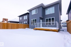 Welcome to Erin Ridge North. St. Alberts newest place to live and raise a family. 106 Edgefield Way is waiting for you. This custom built 2 storey combines function with elegance. No carpet throughtout the entire home. Inside you will find 4 bedrooms upstairs, bonus room and upstairs laundry rm. The main floor contains a den/flex rm, 3 pce bathroom, custom kitchen c/w 2 tone custom cabinetry and quartz tops, functional island,walk thru pantry and huge family room c/w electric fireplace with tiled mantle. The primary suite features a spa enspired 5 piece ensuite including a stand alone tub. The 3 other rooms are very generous in size. All window coverings are included. The deck flooring and railing are maintenace free c/w a gas line for easy BBQing. The attached oversized double garage has a floor drain, water tap, side door access and is big enough to park a full sized pick up. This one is calling out to you. Welcome to Erin Ridge North.