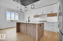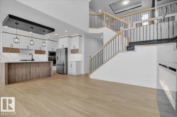 Discover this beautifully crafted home in Erin Ridge, St. Albert, offering over 2,000 sq ft of refined living on two levels. A walk-through pantry leads to a chef’s kitchen with CEILING-HEIGHT two-tone cabinetry, QUARTZ countertops with MATCHING BACKSPLASH, gas cooktop, built-in microwave, and wall oven. The OPEN-TO-BELOW living room boasts a soaring statement wall with a sleek ELECTRIC FIREPLACE framed by FULL-HEIGHT BLACK TILES and elegant spindle railings. The main floor includes a versatile den or 4TH BEDROOM and FULL BATH, while upstairs features a bonus room with feature wall design, two spacious bedrooms, a laundry room, and a stunning primary suite with room for a California king, FEATURE WALL DESIGN, and a SPA-INSPIRED ensuite with SOAKER TUB, shower, and DUAL SINKS. MDF shelving enhances all closets, and a deck extends outdoor living. A SIDE ENTRANCE offers legal-suite potential. Close to shopping, a theatre & more, this home is style, comfort, and opportunity combined. Welcome to your new home!