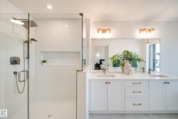 Welcome to the "Carbon" by award-winning builder Justin Gray Homes, in the professionally designed Coastal Zen colour palette. Just shy of 2600 sqft, this home is intentionally designed for growing families, near future schools & recreation centre. With an open concept main floor, enjoy a sunlit living room w/ GAS FIREPLACE, den/office w/frosted glass doors, & a sleek 2 piece bathroom. Step through the signature ARCHED pantry, into the chef inspired kitchen w/custom DOVE-TAILED cabinetry & a large island ideal for hosting. Upstairs, find 4 spacious bedrooms, a BONUS room, & convenient upstairs laundry. The main bath includes DUAL SINKS & w/ a privacy door separating the vanity from the bath/toilet, making busy mornings a breeze. The breathtaking primary retreat has a large WIC & a luxurious 5PC SPA-LIKE ensuite w/soaker tub & walk-in shower. Complete w/OVERSIZED dbl car garage w/drain. Situated on a 30’ pocket lot in St. Albert’s 2025 Best New Community. Move in ready, just in time to enjoy the holidays!