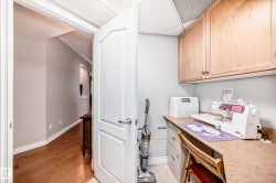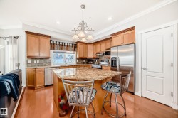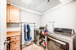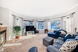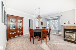 Step into refined urban living in this exceptional corner-unit condo located in the heart of downtown St. Albert. Offering 1594 sq ft of beautifully designed space, with huge windows that bring in natural light and feature remote-controlled blinds. The gourmet kitchen is a true showpiece, flowing effortlessly into a spacious dining area and an expansive living room & dining area highlighted by a stunning 3-sided fireplace. The primary is a private retreat with a walk-in closet, a luxurious ensuite, and large patio doors to private balcony. A generously sized 2nd BR offers comfort and flexibility, while the den provides the ideal space for a home office, or creative studio. A large laundry room with built-in cabinetry and a dedicated workspace adds everyday convenience. Features: A/C, 2 Titled UG parking stalls, Titled storage unit, river valley walking trails, St. Albert Farmers’ Market, shops and restaurants—this is more than a home, it’s a lifestyle upgrade with convenience and upscale appeal.