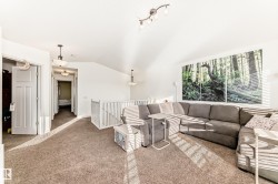 Welcome to this stunning RedBuilt Home proudly cared for by its original owners. Perfectly located in this friendly St. Albert community with easy access to the Henday, this home combines warmth, space & elegance. The main floor features beautiful hardwood, vaulted ceilings & a bright living room with large windows & a cozy gas fireplace. A chef’s kitchen offers granite countertops, a huge island, corner pantry, newer stainless steel appliances & abundant cabinetry, ideal for family gatherings. A spacious mudroom with laundry leads to the double attached garage. The front room den & powder room complete this level. Upstairs, enjoy a large bonus/family room for movie nights, a serene primary suite with its walk-in closet & 4-pc ensuite, 3 additional bedrooms & a full bath. The spacious basement is yours to do as you wish & the fenced backyard (with its numerous berry bushes) is perfect for relaxing or entertaining. Light, airy, beautifully maintained, with central A/C, AND solar panels, it’s a must see!