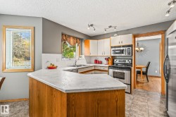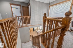 Welcome to your dream home in Heritage Lakes BACKING ONTO HARWOOD PARK! This immaculate AIR CONDITIONED two story residence boasts a classic brick exterior, exuding timeless elegance and charm. Situated on a quiet crescent, this property offers an blend of privacy with direct access to beautiful parks & greenspaces right at your doorstep. EXPANSIVE backyard presents a serene outdoor space you'll absolutely LOVE! You'll be greeted with meticulously landscaped gardens, stunning curb appeal and a welcoming foyer that provides a glimpse of the thoughtful design that awaits. Heart of this home is the upgraded gourmet kitchen (new tile, countertops), lovely breakfast nook and family room overlooking your garden oasis. Front formal living & dining room & main floor laundry completes the main floor. Upper level boasts tranquil primary suite with spa-like bathroom, two additional well-sized bedrooms and cute loft area. Lower level is fully finished with rumpus room/bedroom/bath & ample storage options.