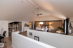 Great Value, Low Condo Fees & Prime Location ! Backs onto river valley trail system and just a short walk to farmers market & numerous amenities. Stunning, Unique & Immaculate! This 1,907sqft loft style condo is magazine ready. The unit has gone through a major renovation using tasteful, timeless and quality materials. The floor plan on each level was brilliantly planned leaving no wasted space. Upper level has been designated to the primary bedroom and Ensuite making up 771sqft. The fixtures are eye-catching and the high-end steam shower takes the space to another level. These two combined spaces will rival that of many homes far in excess of this price point. The 2nd bedroom is on the main with adjacent 4 piece bath. Balance of main level is open concept and lends well to accommodating large gatherings. Other features include 2 parking stalls, vaulted ceilings, large banks of windows, hardwood floors, gas fireplace & stainless appliances with induction stove. GREAT PUBLIC TRANSIT SERVICE TO EDMONTON!