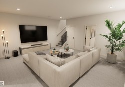 Welcome to the Bungalow Townhome 20 Plus by award-winning Cantiro Homes! This beautifully designed bungalow offers 1,581 sq ft of total living space between the main level and FULLY FINISHED BASEMENT, featuring an open-concept main floor with a spacious primary bedroom and ensuite with main floor laundry. Finished in our stylish Midsummer interior selections, the home blends soft white tones w/ bold black accents. The fully finished basement adds 2 more bedrooms, a full bathroom, and a generous living room, perfect for guests, office, or extra space to relax. Complete with a rear double detached garage, landscaping, fencing and NO CONDO FEES.