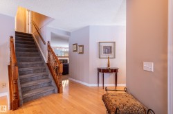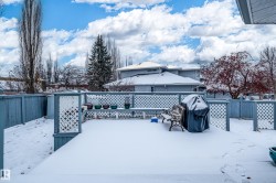 Attractive and spacious 2073 sq ft two storey in beautiful Heritage Lakes, St. Albert's southernmost community. Excellent curb appeal with brick accents and a lovely patio area out front for morning coffees. Formal living room and dining room that have enough space to accommodate larger furniture. The kitchen has been upgraded with granite counters and s/s appliances. The breakfast nook has a garden door to a large deck area and fenced back yard. There is a main floor family room with wood burning fireplace, plus a handy main floor bedroom, 2 piece bath and laundry room. The upper level features 3 bedrooms including the primary suite with 4 piece ensuite and full walk-in closet. There is another 4 piece bath upstairs as well. The lower level is ready for future development. There is copper plumbing throughout plus central air conditioning. Only steps away is a walking trail and several playgrounds nearby. Quick and easy access to all commuter routes.