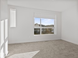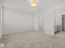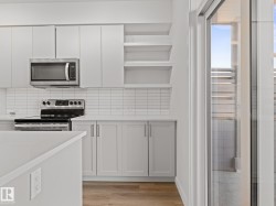Welcome to this nearly NEW townhome in the beautiful Jensen Lakes community of St. Albert! Enjoy MAINTENANCE-FREE living just steps from the BEACH, parks, trails, dining, and theatre. This STYLISH home offers an open-concept layout with 2 bedrooms and 2.5 modern bathrooms. NATURAL LIGHT pours in through large windows, creating a warm, welcoming space for entertaining or relaxing. The SLEEK kitchen features white cabinetry, quartz countertops with a breakfast bar, and stainless-steel appliances. It flows seamlessly into the SPACIOUS living and dining areas and opens to a CHARMING upper deck. Upstairs, you'll find 2 PRIMARY SUITES—each with its own ensuite and closet—plus a convenient laundry area. The ground level includes a MASSIVE tandem garage, utility space, and access to a fenced yard and green space. Whether you're starting out or downsizing, this home is move-in ready, low maintenance, and ideally located—it truly rates a perfect 10/10!