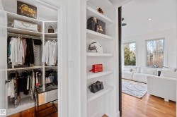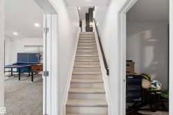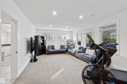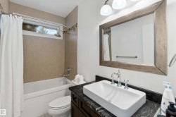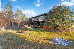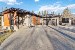 BACKING ONTO A TREED RAVINE & SIDING ONTO A PARK! Welcome to this stunning walkout bungalow in the sought-after community of Grandin, St. Albert. Perfectly situated, this home offers both tranquility & convenience with an additional park across the street. Featuring 4 spacious bedrooms & 2 full baths, including a 3pc primary ensuite with a walk-in closet, this home blends comfort & elegance. Inside, you’ll love the white walls, black doors & stunning hardwood floors that create a timeless modern look. The large kitchen, living room & dining area feature dark kitchen cabinets, massive windows, tile floors, a gas range, SS appliances, and an eating island, offering both style & functionality. The walkout lower level includes a generous recreation room, large laundry room & ample storage space. Complete with a double attached garage & an aggregate driveway, this luxury bungalow combines exceptional craftsmanship, thoughtful design & an unbeatable location with serene park views. All this home needs is YOU!