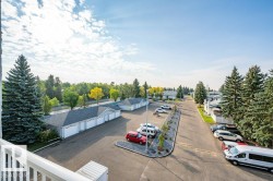 Better than new, welcome to this immaculate 4th floor 1 bedroom plus a den condo! Spotless and move in ready, this could be your new home! Newer upgraded vinyl plank and paint makes this spacious condo like new. It features a large livingroom with high ceilings and soaring vaulted ceilings to add to the beauty and space of this room. With loads of natural light flowing throughout, enjoy the direct access to a spacious balcony which has lovely views to the south. Enjoy the gas fireplace in the winter and a/c in the summer. Plenty of space in the separate dining room which is located just off the well laid out kitchen. To end your busy day, relax in the jacuzzi tub. PARKING: Single car GARAGE and also 1 assigned outdoor STALL
