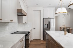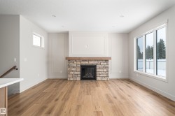 Looking for a fully finished bungalow in a quiet neighbourhood backing a golf course? Backing the 3rd hole on the Stony Plain golf course awaits a turn-key fully finished bungalow packed with upgrades and exudes quality craftsmanship throughout. This tastefully designed south facing home features vinyl plank flooring, two toned kitchen cabinetry with custom range hood, tiled backsplash, s/s appliances, quartz countertops, gas fireplace with stone surround, 9ft ceilings w/ 8ft solid core doors, generous primary bedroom w/ 5 pce ensuite and walk-in closet, main floor laundry & plenty of storage. The basement is fully finished hosting two generous bedrooms, 4 pce bath and a spacious rec room for endless entertaining possibilities. Notable feat. include central A/C, tankless hot water system and a heated garage perfect for our cold winters. This home is perfect for a couple with adult kids, empty nesters or those looking to downsize yet still wanting the high end finishings and attention to detail.