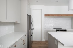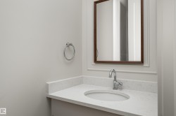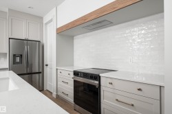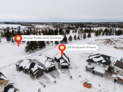Nestled on a .24 acre pie shaped lot backing the 3rd hole of the Stony Plain Golf Course awaits a truly unique bungalow brought to life by HRD Homes. With sophisticated details and high end finishings around every corner this home exudes elegance and class. This open concept home is bright & airy and features 2 beds, 1.5 bath, vinyl plank flooring, tiled kitchen backsplash, s/s appliances, under cabinet lighting, a large island that's perfect for gatherings, walk through pantry, main floor laundry, custom built ins & wooden details, tankless hot water system, heated garage, BBQ gas line, 9ft ceilings w/ 8ft solid core doors and the-list goes on. The basement is unfinished but not needed unless desired as you have over 1,520sqft of living space on the main level. A home like this rarely comes to market and is perfect for empty nesters looking for a large lot or those looking to downsize yet still wanting the high end finishes and attention to detail.