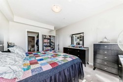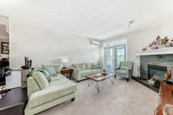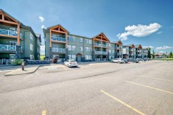 This fantastic unit in the Savana Condos of Strathmore offers a prime location within walking distance to the lake, pond, and all nearby amenities. With over 1,000 square feet of living space, this spacious two-bedroom, two-bathroom condo is an excellent opportunity for both homeowners and investors. The unit includes three titled parking stalls—one tandem heated underground stall (with extra storage in front) and one titled exterior surface stall. Underground stall is 111 and surface stall is 205 Inside, the layout is open and inviting with open concept from the living room to the dining area and kitchen. The kitchen is thoughtfully designed with abundant cabinet space, upgraded stainless steel appliances including a fridge with water and ice, a large L-shaped island with an eating bar, a pantry, and granite countertops. Ceramic tile flooring is featured in the kitchen and bathrooms, while the rest of the unit is finished in carpet. The living room offers a cozy gas corner fireplace and access to a spacious balcony with a lovely view.The master bedroom is impressively large and filled with natural light from multiple windows. It includes a walk-through closet that leads to a luxurious five-piece ensuite with double sinks, a separate shower, and a soaker tub. The second bedroom is also generous in size with plenty of closet space, and there's an additional four-piece bathroom for guests. For added comfort, the unit features in-floor heating, air-conditioning unit on the deck and wall unit in living room, and a washer and dryer are conveniently located in-suite.This well-managed complex is known for its popularity and desirability. Currently, the property is tenanted with a lease in place until June 2026 at $2,000 per month. The tenant is open to extending their stay, making this a strong investment opportunity for those looking to secure a reliable rental income. Please note that while dogs are not permitted in the complex, cats are allowed with board approval.