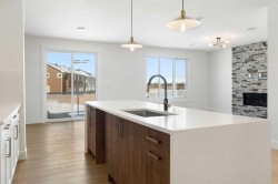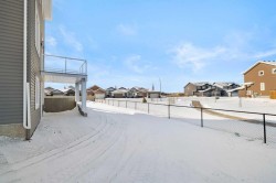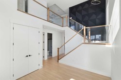 WALKOUT | OVERSIZED TRIPLE GARAGE | QUIET CUL-DE-SAC | PIE LOT ON PATHWAY | LAKE VIEWS | ALMOST 2,700 SQ FT Wake up to peaceful living and views. Step directly onto pathways from your backyard. Tucked away on a quiet cul-de-sac in prestigious Strathmore Lakes Estates, this exceptional walkout home sits on a large pie-shaped lot backing the pathway system with breathtaking lake views. Offering close to 2700 sq ft of refined living space, this modern contemporary residence blends upscale finishes with thoughtful functionality — all anchored by an oversized triple garage, perfect for vehicles, storage, or toys. A dramatic two-storey foyer, open to above, floods the home with natural light and creates an immediate sense of space. The open-concept main floor is designed for both elevated entertaining and everyday comfort, featuring a chef-inspired kitchen with granite countertops, a statement island, walk-through pantry, custom feature walls, gas fireplace and high-end finishes throughout. A standout feature is the full bathroom on the main level, offering flexibility for guests or multi-generational living. The main-floor office can easily convert into an additional bedroom if desired. Upstairs, a bright bonus room provides the perfect family retreat. The primary suite is a true sanctuary, capturing beautiful views and offering a spacious walk-in closet with custom built-ins and a spa-inspired 5-piece ensuite. Two additional generously sized bedrooms — both with walk-in closets — share an impressive 5-piece bathroom, ideal for growing families. The walkout basement remains unfinished — a blank canvas ready for your custom vision. Whether you imagine a home theatre, gym and additional bedrooms the open space makes future development especially compelling. With quick access to over 50 km of scenic pathways in Strathmore, winding through canals and green space, plus the privacy of a quiet cul-de-sac and the bonus of a triple garage, this property delivers luxury, location, and lifestyle in one remarkable package. A rare opportunity to secure one of the community’s most desirable lots with room to grow.