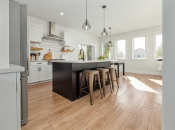 Discover the perfect blend of luxury and comfort in this stunning residence, designed for both relaxation and entertainment. Nestled in a serene neighborhood, this home offers an inviting atmosphere that welcomes you from the moment you step inside. Enjoy the outdoors on your maintenance-free deck, and an east-facing patio that provides a sheltered space to relax out of the wind. The home features a maintenance-free exterior, beautifully landscaped and fully fenced, complete with underground sprinklers for effortless lawn care. The heart of the home is the open-concept kitchen, featuring quartz countertops and a large island with built-in appliances. Floating walnut shelves add a touch of elegance, while the walkthrough pantry, with beautiful walnut wood accents, conveniently connects to the garage for easy unloading of groceries. With nine-foot ceilings and a beautiful wall of windows, the open kitchen, dining, and living room create a bright and airy environment, perfect for entertaining. Three distinct living rooms found throughout this home offer plenty of space for relaxation and gatherings. This home features four spacious bedrooms, each with unique feature walls that add character and charm. The bathrooms are designed with style and functionality in mind, featuring gorgeous, modern finishes. The basement offers a dry bar, perfect for entertaining, with the option to fit a wet bar if desired. Pot lights throughout the house provide a warm and inviting glow. The garage is a true hobbyist's paradise, complete with a built-in workbench, ample storage, and a slat wall to keep your yard tools organized. Plus, it’s heated to ensure comfort year-round. Step outside to your charming courtyard, a perfect spot for morning coffee or evening relaxation. With a walking path and playground conveniently outside your back fence this home offers easy access to everything you need while maintaining a peaceful suburban feel. This exceptional home is more than just a property; it's a place where cherished memories are waiting to be made. Don’t miss the opportunity to call this inviting space your own!