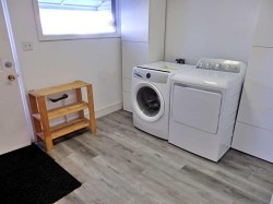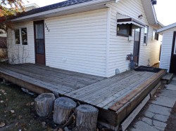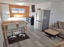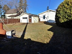Renovated Bungalow Backing onto Greenspace! A true 'secluded' feel on this oversized lot, situated on the edge of town near a playground and a soccer field. The garage has been transformed into a "Man Cave / She Shed" with it's own heat source, water supply, bathroom, kitchen etc. Inside the home: all new flooring, sub-floor, bathroom & kitchen reno, as well as re-modelling of the floorplan. Fully-fenced back yard with an R.V outlet, alley access, two large storage sheds, as well as a fire pit area. Vacant and can accommodate an immediate possession transfer.